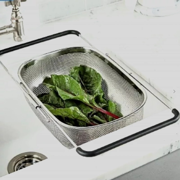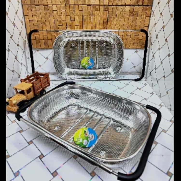 آبکش پانچ پایه دار سایز بزرگ دسته کشویی استیل ضد زنگ داخل سینک مارک لیزئی