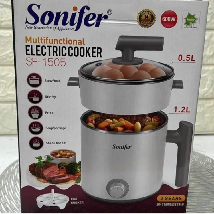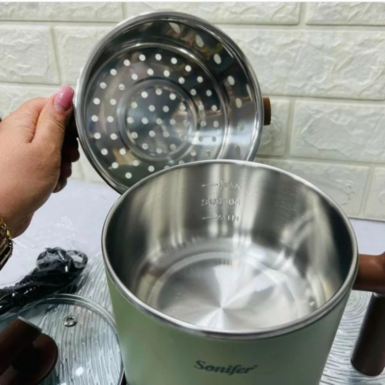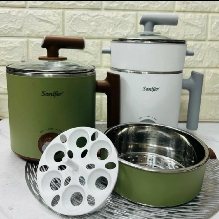 دستگاه همه کاره سانیفر این محصول با برق کار میکنه برا همین برا استفاده تو خونه، اداره ها بیمارستان و محل کار عالیه👌😍 ✅ دوطبقه ✅ برقی حجم قسمت پایین ۱/۲لیتر و قسمت پایین ۰/۵ لیتر هست جنس داخلی استیل درجه یک و بدنه یه لایه پلاستیک فشرده و باکیفیت هست 😍 دورنگ سفید و سبز وارداتی کیفیت عالی کاربردش👇👇 ✅ سوپ پز ✅ خورشت پز ✅ سرخکن ✅ بخارپز و آبپز ✅ کیک پز ✅ برای پخت برنج هم استفاده میشه
