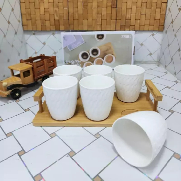 لیوان نسکافه خوری6 عددی سرامیکی همراه باسینی بامبو