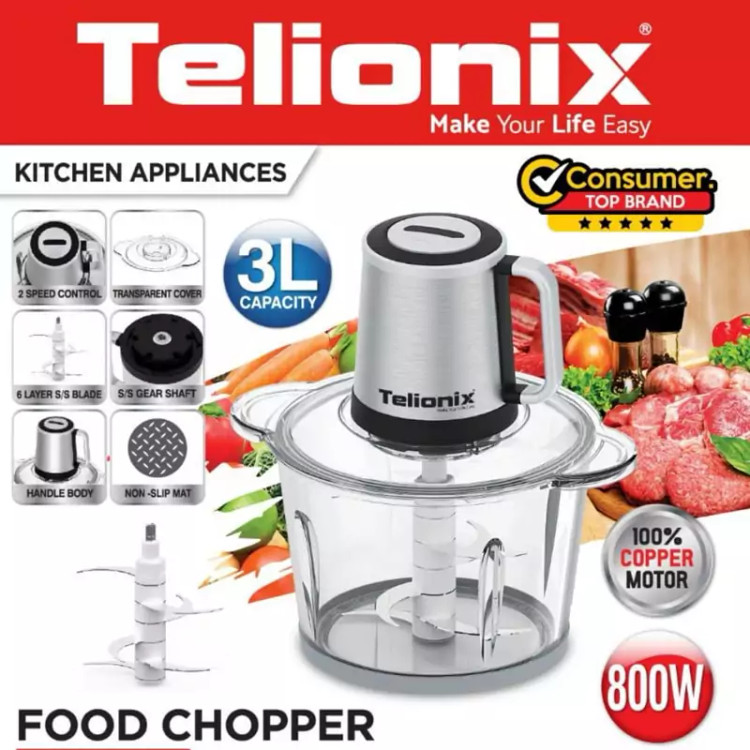 خردکن 3لیتری تلونیکس کاسه شیشه ای 6تیغه800وات