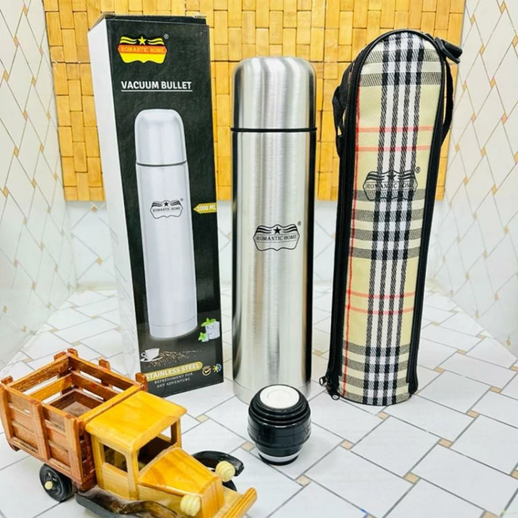 فلاکس سرد و گرم استیل کیف دارمسافرتی سایز 1 لیتری با نگهدارندگی بالا مارک رومانتیک ساخت کشور چین ROMANTIC 🇨🇳 VACUUM BOTTLE 🇨🇳 وارداتی