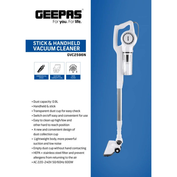 جارو عصایی جیپاس ظرفیت گرد و غبار: 0.9L • دستی و چوبی • لیوان گرد و غبار شفاف برای بررسی آسان • روشن/خاموش کردن آسان و راحت برای استفاده • آسان برای تمیز کردن بالا/پایین و سایر موقعیت های سخت در دسترس طراحی جدید و راحت لیوان گرد و غبار بدنه سبک، مکش قوی تر و صدای کم • لیوان گرد و غبار را بدون تماس دست خالی کنید • فیلتر HEPA + فولاد ضد زنگ و جلوگیری از بازگشت مواد حساسیت زا به هوا AC 220-240V 50/60Hz 600W یک جارو برقی خوب یک مکمل مفید برای هر خانه و نظافت نظافت خانگی است. هنگامی که نیازی به نگرانی در مورد ماندن در محدوده پریز نیست، به راحتی میتوانید مناطق کوچک و دور از دسترس را در داخل خانه خود و در فضاهای کوچک تر مانند فضای داخلی خودرو تمیز کنید. همچنین لازم نیست نگران گیر کردن سیم برق روی یک مبلمان باشید و معطلی خسته کننده برای نظافت شما ایجاد کند. با طراحی شیک و همه کاره خود، تمیز کردن را بدون زحمت انجام میدهد و به راحتی روی بسیاری از انواع کف مانند فرش، کف سخت، کاشی، سنگ مرمر و گرانیت میچرخد. از آنجایی که سبک وزن است، میتوانید آن را به راحتی از اتاقی به اتاق دیگر یا از طبقه بالا و پایین حمل کنید و این جاروبرقی مناسبی برای تمیز کردن سریع و آسان است. با استفاده از موتور قدرتمند 600 واتی آن، می توانید مطمئن باشید که کار را به راحتی انجام خواهد داد. جارو برقی عصایی جیپاس مدل GVC2596 مجهز به ابزار، کیسه گردگیری و چوب دستی است. این بدان معناست که نه تنها میتوانید کفهای سخت و نرم خود را با تمیزکننده، بلکه تختههای دامن خود و هر جایی که تا سقف فکر کنید را نیز میتوانید انجام دهید