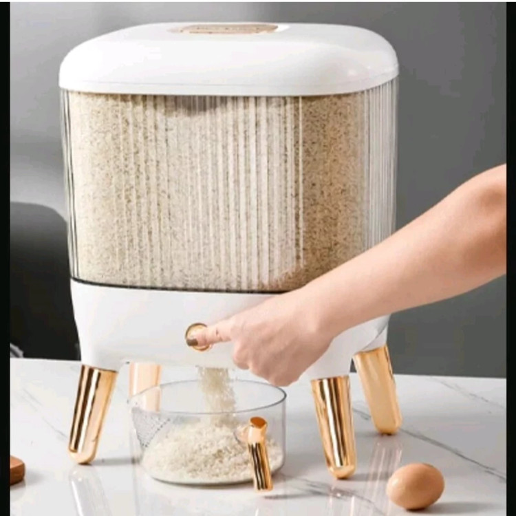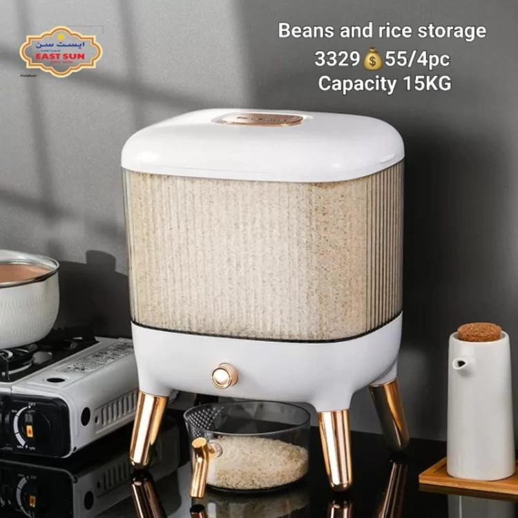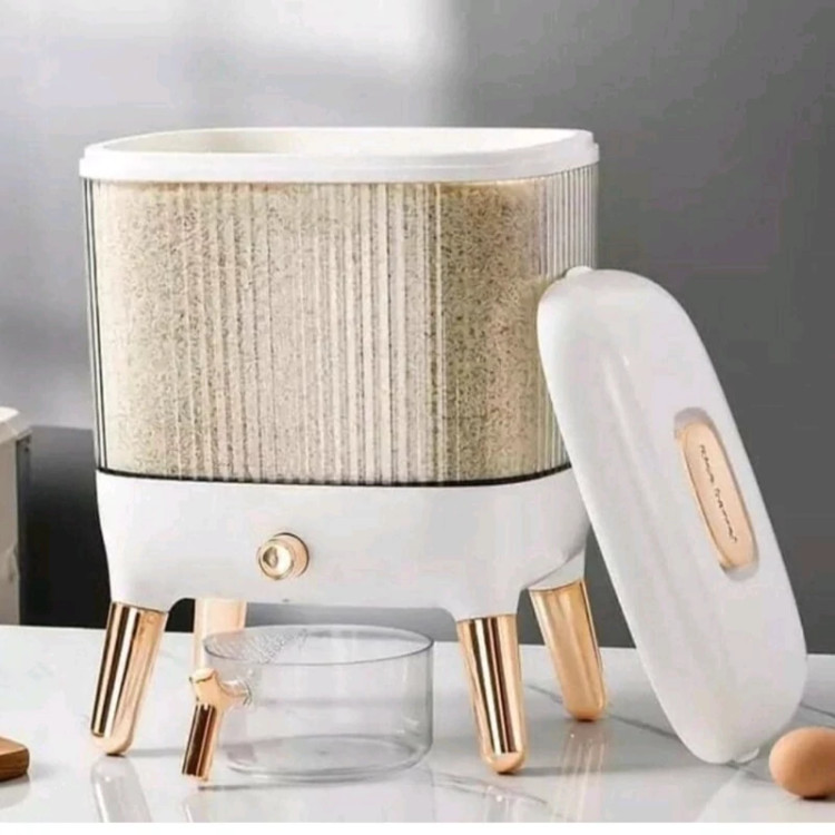 جا برنجی وارداتی پایه رزگلد ظرفیت مخزن 12 کیلوگرم ارتفاع 39 سانتی متر ساخت چین با کیفیت عالی «به همراه پیمانه»